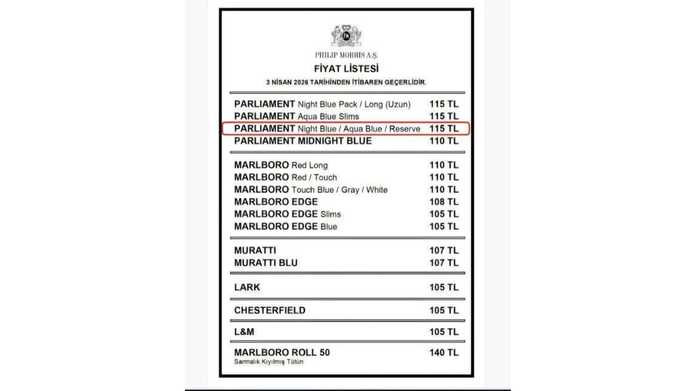 Zam sonrası güncellenen fiyat listesine göre, ilgili sigara grubunda en düşük fiyatlı ürünler 105 TL seviyesine yükseldi. Aynı grubun en yüksek fiyatlı ürünleri ise 115 TL bandına ulaştı. Böylece birçok üründe fiyat aralığı yeniden şekillenmiş oldu.
